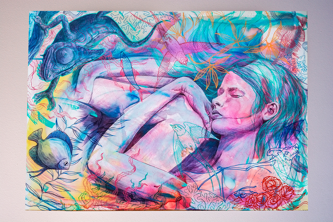 Medium: Watercolor + Acrylic + markers on canvas